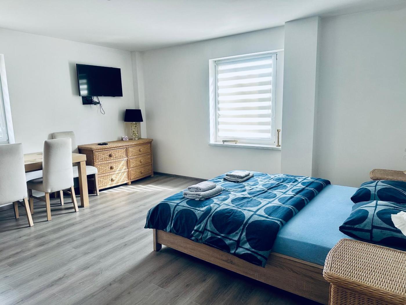 Dom z 3 sypialniami. This holiday home provides a fireplace. This air-conditioned holiday home comprises 1 living room, 3 separate bedrooms and 1 bathroom with a shower. Guests will find a stovetop, a refrigerator, a dishwasher and kitchenware in the kitchen. The holiday home also provides guests with a barbecue. This holiday home features a tea and coffee maker, a seating area, a flat-screen TV and a terrace. The unit offers 5 beds. Dom wakacyjny - 8 osobowy. Powierzchnia pokoju ok.: 10 mkw.