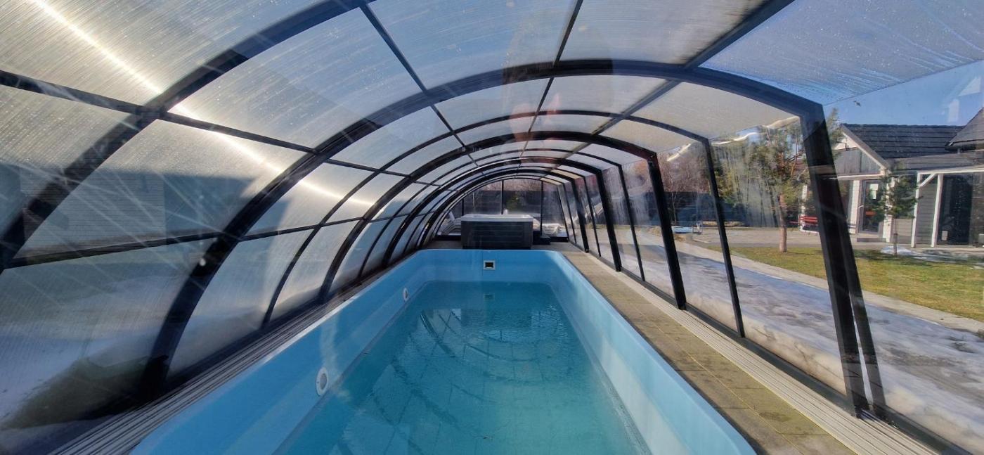 Zaplecze odnowy biologicznej obiektu Komfortowe i Stylowe Domki obejmuje saunę i wannę z hydromasażem.