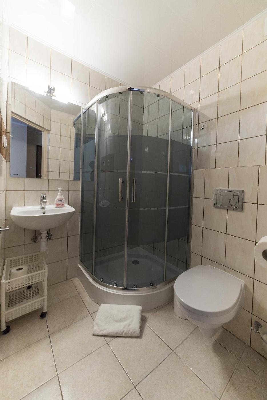 Pokój dwuosobowy. The double room offers a tea and coffee maker and a dining area, as well as a private bathroom featuring a shower. The unit offers 1 bed. Pokój Dwuosobowy - 2 osobowy. Powierzchnia pokoju ok.: 18 mkw. ;