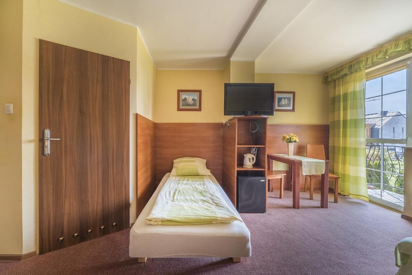 Pokój Trzyosobowy typu Deluxe. The triple room offers a tea and coffee maker and a dining area, as well as a private bathroom boasting a shower. This triple room provides a barbecue and a flat-screen TV. The unit has 2 beds. Pokój Trzyosobowy - 3 osobowy. Powierzchnia pokoju ok.: 18 mkw. ;